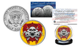 This SKULL coin is a treasured collectible, combining the popularity of skulls with coin collecting. Here is your chance to own a beautifully colorized JFK Kennedy Half Dollar U.S. Coin. This high-quality genuine Legal Tender U.S. coin has been colorized using a unique painstaking multi-color authentic process by the Merrick Mint. Each coin comes in a premium coin capsule with a Certificate of Authenticity to guaranty that your coin is authentic and recognized by every monetary authority around the world, assuring its Collector Edition status.