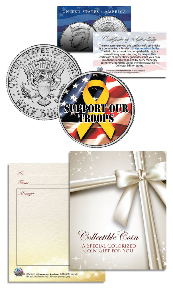 SUPPORT OUR TROOPS - YELLOW RIBBON - JFK Kennedy Half Dollar US Colorized Coin