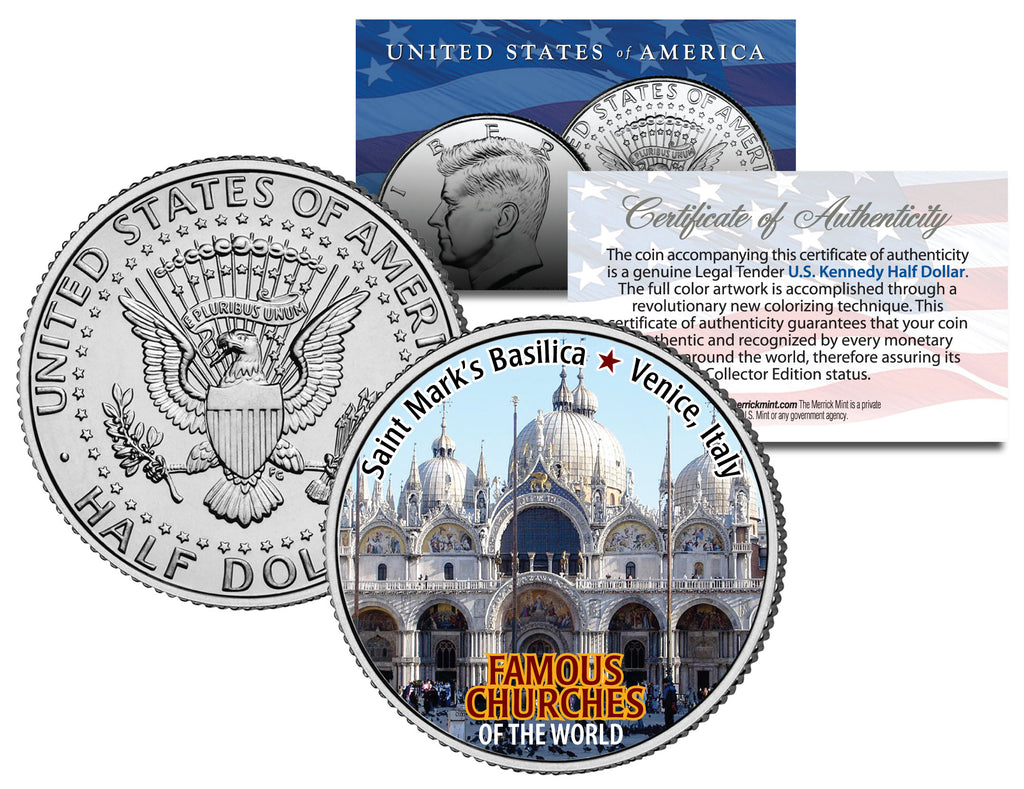• SAINT MARK’S BASILICA - Famous Churches - Colorized JFK Half Dollar U.S. Coin Venice Italy