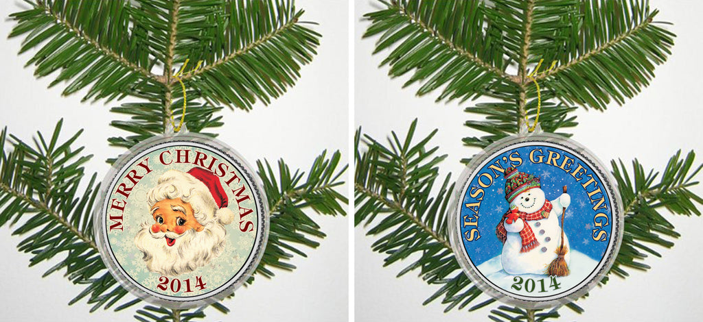 Capture the magic of Christmas with this genuine 2014 JFK Kennedy Half Dollar U.S. 2-coin set. Each coin comes with an ornament capsule, transforming these colorized coin keepsakes into a holiday decoration to be treasured for years to come. The 2-coin set includes: a “2014 MERRY CHRISTMAS – SANTA CLAUS” coin plus a “2014 SEASON’S GREETINGS – SNOWMAN” coin. These high-quality genuine Legal Tender U.S. coins have been colorized using a unique painstaking multicolor authentic process. Colorizing coins involves the unique application of special inks directly to the surface of a coin that achieves a level of detail, color saturation, and durability that is #1 in the coin industry. The result is an everlasting colorized coin collectible of ultra-high quality. Each 2-coin set comes with a Certificate of Authenticity to guarantee that your coins are authentic and recognized by every monetary authority around the world, assuring their Collector Edition status. The 2014 Kennedy half dollar is a U.S. fifty cent coin with coin mint marks chosen at random. As a bonus, you will also receive an attractive, handy Gift Message Card for you to personalize when giving the coins as a gift.