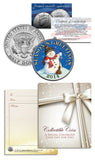 Capture the magic of Christmas with this genuine 2014 JFK Kennedy Half Dollar U.S. coin. Each coin comes with an ornament capsule, transforming this colorized coin keepsake into a holiday decoration to be treasured for years to come. This high-quality genuine Legal Tender U.S. coin has been colorized using a unique painstaking multicolor authentic process. Colorizing coins involves the unique application of special inks directly to the surface of a coin that achieves a level of detail, color saturation, and durability that is #1 in the coin industry. The result is an everlasting colorized coin collectible of ultra-high quality. Each coin comes with a Certificate of Authenticity to guarantee that your coin is authentic and recognized by every monetary authority around the world, assuring its Collector Edition status. The 2014 Kennedy half dollar is a U.S. fifty cent coin with coin mint marks chosen at random. As a bonus, you will also receive an attractive, handy Gift Message Card for you to personalize when giving the coin as a gift.