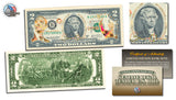 This limited edition BARACK OBAMA INAUGURATION GOLD LEAF uncirculated $2 Bill is Genuine Authentic Legal Tender of the United States, which has been holographically enhanced with a special and unique process by the Merrick Mint. Using specialized advanced technology, the Merrick Mint has permanently transferred the exclusive Gold Leaf Diamond Laser Line design onto the $2 bill creating a holographic work of art. Each bill comes displayed in a clear acrylic holder which is viewable on both sides with a certificate of authenticity. Inauguration of Barack Obama as the 44th President of the United States was on January 20, 2009. Each $2 Bill is in FRESH, CRISP, UNCIRCULATED condition, and was directly removed from untouched wrapped Federal Reserve sealed packs. Former U.S. President Thomas Jefferson is featured on the obverse of the note, along with the special colorization overlay. The Signing of the Declaration of Independence by John Trumbull is featured on the reverse. It is the only U.S. Currency note that features two Presidents, John Adams and Thomas Jefferson, and it is one of the most rarely seen BILLS in circulation and actual use.