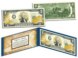 This limited edition UNITED STATES ARMY GOLD LEAF uncirculated $2 Bill is Genuine Authentic Legal Tender of the United States, which has been holographically enhanced with a special and unique process by the Merrick Mint. Using specialized advanced technology, the Merrick Mint has permanently transferred the exclusive Gold Leaf Laser Line design onto the $2 bill creating a gold holographic work of art. Included is a blue display portfolio plus a Certificate of Authenticity to guarantee that your bills are authentic and recognized by every monetary authority around the world, and assuring its Collector Edition status. Each $2 Bill is in FRESH, CRISP, UNCIRCULATED condition, and was directly removed from untouched wrapped Federal Reserve sealed packs. Former U.S. President Thomas Jefferson is featured on the obverse of the note, along with the special gold holographic overlay. The Signing of the Declaration of Independence by John Trumbull is featured on the reverse. It is the only U.S. Currency note that features two Presidents, John Adams and Thomas Jefferson, and it is one of the most rarely seen BILLS in circulation and actual use.
