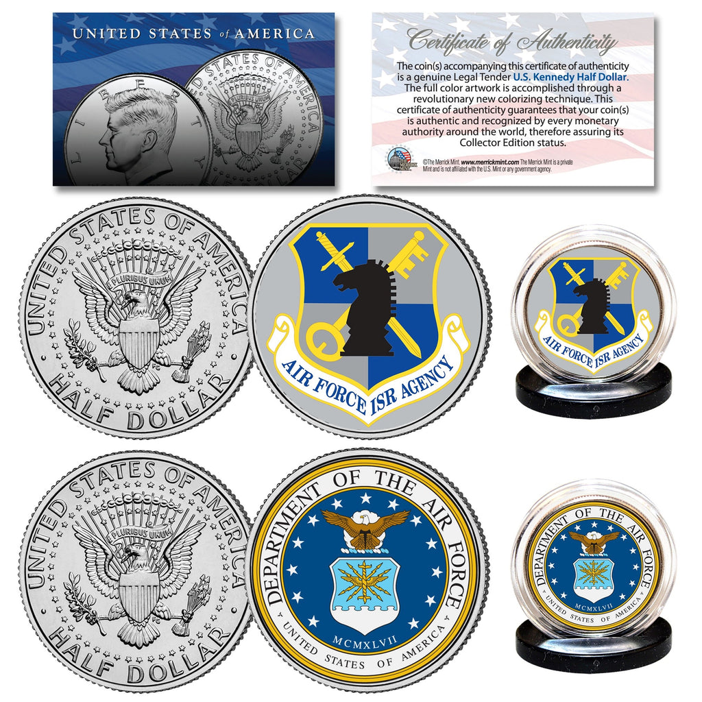 AIR FORCE & USAF INTELLIGENCE Branch JFK Half Dollar Armed Forces Military 2-Coin U.S. Set. The set comes with a Certificate of Authenticity to guaranty that your coins are authentic and recognized by every monetary authority around the world, assuring its Collector Edition status. Each coin comes in a premium coin capsule.
