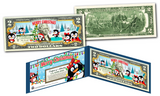 • PENGUINS - MERRY CHRISTMAS XMAS Holiday Colorized Legal Tender U.S. $2 Bill with Certificate and Folio