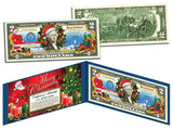 This MERRY CHRISTMAS uncirculated $2 Bill is Genuine Authentic Legal Tender of the United States, which has been enhanced with beautiful colorized images. The full colorized images are accomplished through a revolutionary new authentic & genuine colorization process pioneered by The Merrick Mint, creating a collectible work of art. Each bill comes displayed in a blue folio with a Certificate of Authenticity to guarantee that your bills are authentic and recognized by every monetary authority around the world, therefore assuring its Collector Edition status. Each $2 Bill is in FRESH, CRISP, UNCIRCULATED condition, and was directly removed from untouched wrapped Federal Reserve sealed packs. Former U.S. President Thomas Jefferson is featured on the obverse of the note, along with the special colorization overlay. The Signing of the Declaration of Independence by John Trumbull is featured on the reverse. It is the only U.S. Currency note that features two Presidents, John Adams and Thomas Jefferson, and it is one of the most rarely seen BILLS in circulation and actual use.
