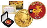 This CHINESE NEW YEAR 2018 – YEAR OF THE DOG COIN is lucky money and a treasured collectible. This high-quality tribute coin has been layered in Genuine 24 Karat Gold, and then enhanced with beautiful colorized images using a unique painstaking multicolor authentic process.