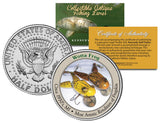 COLLECTIBLE ANTIQUE FISHING LURES SERIES – Wotta Frog (Most Artistic Rendition of Frog Skin - Circa 1930’s, MI). Here is your chance to own an OFFICIAL beautifully colorized JFK Kennedy Half Dollar U.S. Coin. This official high-quality genuine Legal Tender United States coin has been colorized using a unique painstaking multicolor authentic process. Colorizing coins involves the unique application of special inks directly to the surface of a coin that achieves a level of detail, color saturation, and durability that is #1 in the industry. The result is an everlasting colorized coin collectible of ultra-high quality. Each coin comes in a premium coin capsule with a Certificate of Authenticity.