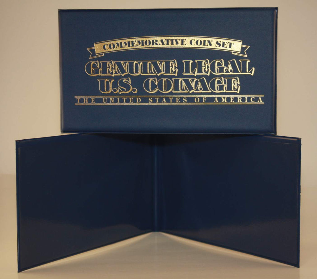 •CURRENCY/COIN BLUE FOLIO •Holds bills in the front and back cover pockets •With your coin insert, can hold coins in the front and back cover pockets •Foil stamped Folio cover •Quantity: Lot of 2 Folios •Uses: Gift, Display, Storage, Presentation •Folio size: Length: 7" x Width: 4" •Each page holds bills with size up to: Length: 6.25" x Width: 3.25" •Brand new condition •Bills and coins not included •For large orders, contact us for pricing. •FREE SHIPPING!
