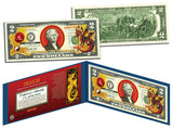 A great gift, this CHINESE ZODIAC – YEAR OF THE DRAGON uncirculated U.S. $2 Bill is Genuine Authentic Legal Tender of the United States, which has been enhanced with colorized images. The colorized images are accomplished through a revolutionary new authentic & genuine colorization process pioneered by The Merrick Mint, creating a collectible work of art. Each bill comes displayed in a blue folio with a Certificate of Authenticity to guarantee that your bills are authentic and recognized by every monetary authority around the world, therefore assuring its Collector Edition status. Each $2 Bill is in FRESH, CRISP, UNCIRCULATED condition, and was directly removed from untouched wrapped Federal Reserve sealed packs. Former U.S. President Thomas Jefferson is featured on the obverse of the note, along with the special colorization overlay. The Signing of the Declaration of Independence by John Trumbull is featured on the reverse. It is the only U.S. Currency note that features two Presidents, John Adams and Thomas Jefferson, and it is one of the most rarely seen BILLS in circulation and actual use.