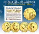 2007 Presidential $1 Dollar U.S. 24K GOLD PLATED - Complete 4-Coin Set - with Capsules