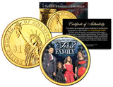 Members of the current First Family of the United States include President Barack Obama, his wife First Lady Michelle Obama, and their daughters Malia and Sasha Obama. Here is your opportunity to own or to gift the “THE FIRST FAMILY ” colorized 24 Karat Gold Plated Inaugural George Washington 2007 Presidential $1 U.S. Coin, which has been layered in Genuine 24 Karat Gold, and then beautifully enhanced with colorized images by the Merrick Mint. Each coin comes in a premium coin capsule with a full color Certificate of Authenticity. This Legal Tender United States coin has been colorized with an application of special inks directly to the surface of the coin, using a unique and painstakingly multicolor coin process, which achieves a level of detail, color saturation, and durability that is #1 in the coin industry. The result is an everlasting colorized coin collectible of ultra-high quality. The inaugural George Washington 2007 Presidential $1 U.S. Coin features a Statue of Liberty design on the reverse and a George Washington portrait design on the obverse.