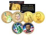 Here is your opportunity to own or to gift the ABRAHAM LINCOLN 2010 Presidential $1 U.S. 3-coin set. The complete 3-coin set features 3 different versions of the same coin enhanced by the Merrick to highlight the original design using a unique authentic process including Colorization, Hologram and 24K Gold Plated. The everlasting enhanced coins are ultra-high quality collectibles. Each coin is genuine legal tender of the United States. Each coin comes in a premium coin capsule. The 3-coin set comes with a Certificate of Authenticity to guarantee that your coins are authentic and recognized by every monetary authority around the world, assuring its Collector Edition status. The Abraham Lincoln 2010 Presidential $1 U.S. Coin features a Statue of Liberty design on the reverse and an Abraham Lincoln portrait design on the obverse.