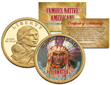 Hiawatha is a legendary Native American leader and CO-FOUNDER OF THE IROQUOIS CONFEDERACY. This FAMOUS NATIVE AMERICANS – HIAWATHA coin is a treasured collectible. Here is your chance to own a beautifully colorized 2013 Sacagawea Dollar Native American $1 U.S. Coin. This high-quality genuine Legal Tender U.S. coin has been colorized using a unique painstaking multicolor authentic process. Colorizing coins involves the unique application of special inks directly to the surface of a coin that achieves a level of detail, color saturation, and durability that is #1 in the coin industry. The result is an everlasting colorized coin collectible of ultra-high quality. Each coin comes in a premium coin capsule with a Certificate of Authenticity.
