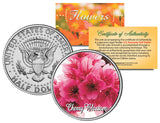 This FLOWER SERIES coin is a treasured collectible, combining the popularity of flowers with coin collecting. Here is your chance to own a beautifully colorized JFK Kennedy Half Dollar U.S. Coin. This high-quality genuine Legal Tender U.S. coin has been colorized using a unique painstaking multicolor authentic process. Colorizing coins involves the unique application of special inks directly to the surface of a coin that achieves a level of detail, color saturation, and durability that is #1 in the coin industry. The result is an everlasting colorized coin collectible of ultra-high quality. Each coin comes in a premium coin capsule with a Certificate of Authenticity.