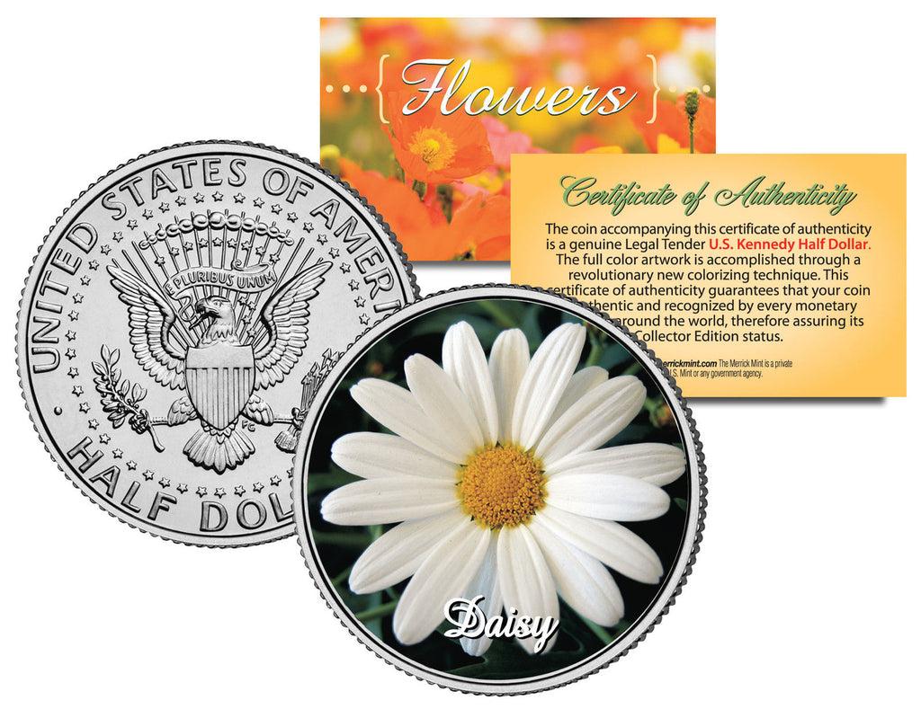 • DAISY FLOWER JFK Kennedy Half Dollar U.S. Colorized Coin