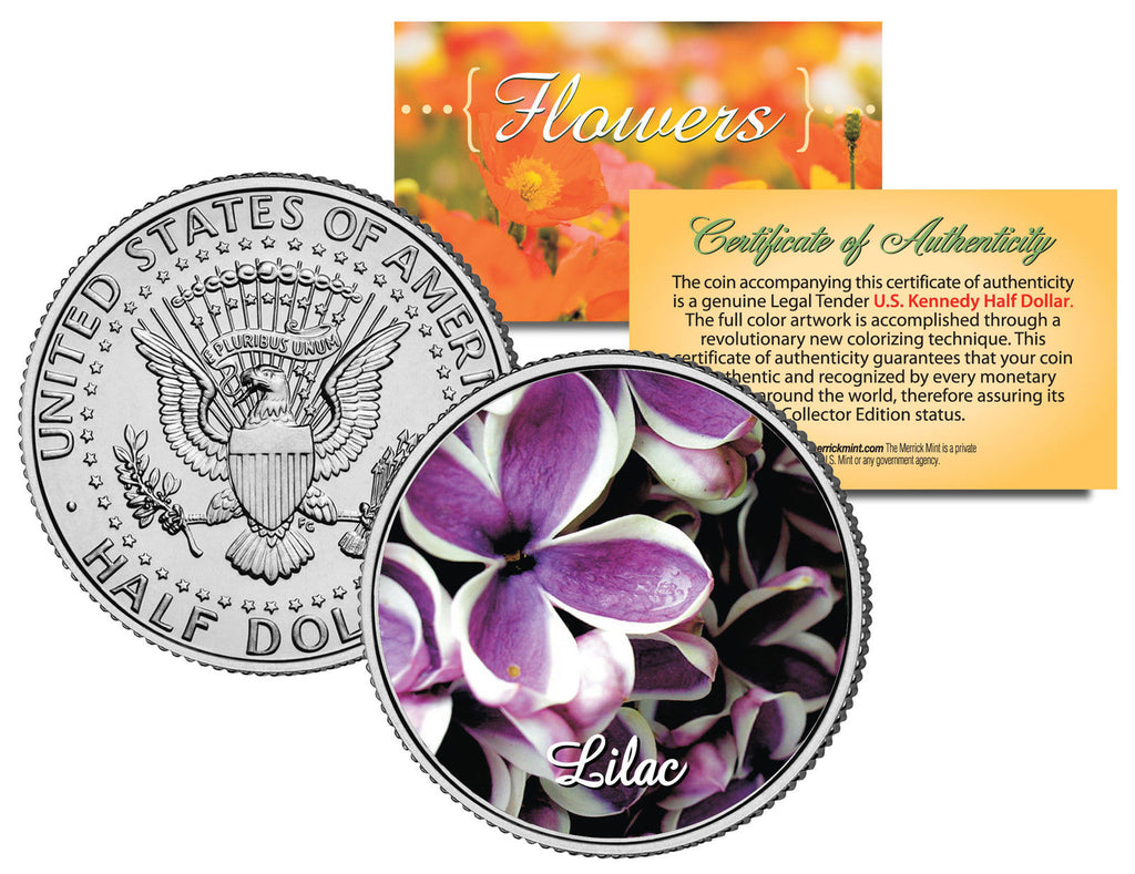 LILAC FLOWER JFK Kennedy Half Dollar U.S. Colorized Coin
