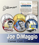 Here is your opportunity to own or to gift the JOE DiMAGGIO complete 3-coin set of colorized 2001 New York Statehood Quarters U.S. Coins, which have been enhanced with beautifully colorized images by the Merrick Mint. As a bonus, the Hall of Fame Quarter has been plated with 24K Gold. Each coin comes in a premium coin capsule. The complete 3-coin set comes with a full color Certificate of Authenticity. These Legal Tender United States coin have been colorized with an application of special inks directly to the surface of the coin, using a unique and painstakingly multicolor coin process, which achieves a level of detail, color saturation, and durability that is #1 in the coin industry. The result is an everlasting colorized coin collectible of ultra-high quality. Each Statehood Quarter coin features an emblematic design of New York State on the reverse and colorized image of Joe DiMaggio on the obverse (portrait of George Washington design).