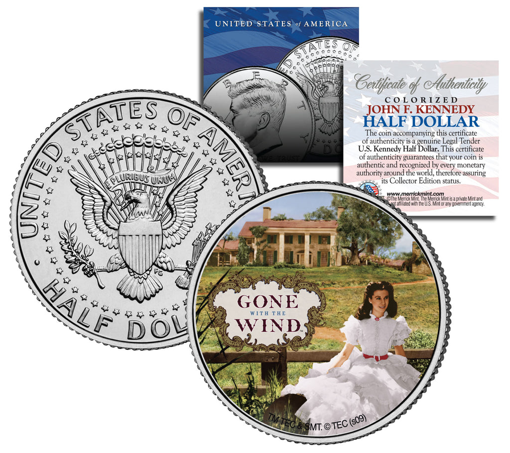 • Gone with the Wind " Scarlett on Plantation " JFK Kennedy Half Dollar US Colorized Coin - Officially Licensed