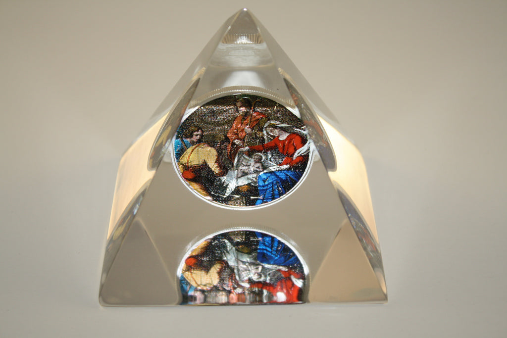 The beautiful Jesus Christ colorized 2001 American Silver Eagle coin is permanently set in an acrylic Lucite paperweight, making it a magnificent religious display piece for your home or office. The Jesus Christ colorized 2001 U.S. Silver Eagle Dollar is genuine legal tender struck by the U.S. Mint. It is minted in one full ounce of .999 PURE SILVER and measures 40.6mm in diameter. This brilliant uncirculated silver dollar has been enhanced by a unique colorization process. Coin inside this clear acrylic Lucite block gives it a 3D look, this is truly a piece you will cherish and share with all. The paperweight is 2-3/4” in height.