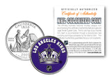 Here is your chance to own an OFFICIALLY LICENSED, beautifully colorized Legal Tender 2005 California Statehood Quarter U.S. coin that is beautifully colorized with the licensed NHL logo image of your favorite NHL team, the LOS ANGELES KINGS. Each coin is officially licensed and approved by the National Hockey League (NHL). This uncirculated Genuine Legal Tender Statehood Quarter U.S. Coin has been colorized using a unique multicolor authentic process by the Merrick Mint. Colorizing coins involves the unique application of special inks directly to the surface of a coin using a unique and painstakingly multi-color coin process, that achieves a level of detail, color saturation, and durability that is #1 in the industry. The result is an everlasting colorized coin collectible of ultra-high quality. Each uncirculated coin comes in a premium coin capsule with a NHL Certificate of Authenticity. Each Statehood Quarter coin features an emblematic design of the state on the reverse and colorized NHL team logo image on the obverse (portrait of George Washington design).