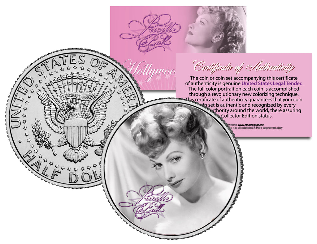 Lucille Ball - I Love Lucy Elegant - JFK Kennedy Half Dollar US Coin - Officially Licensed