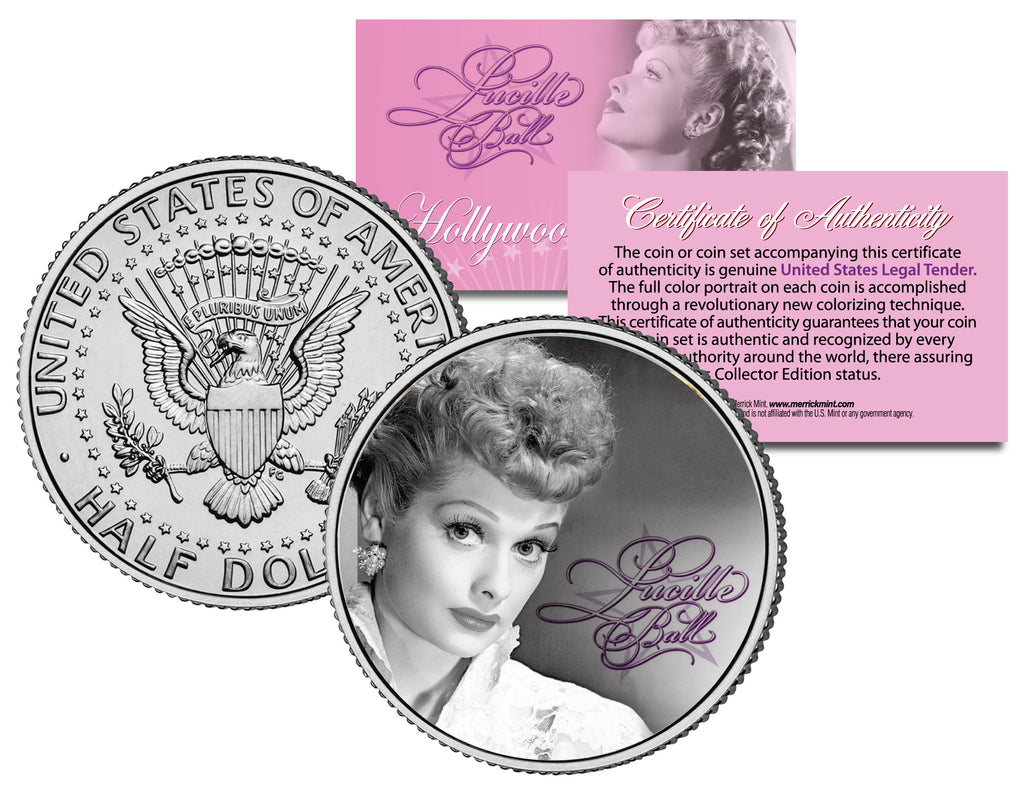Lucille Ball - I Love Lucy Portrait - JFK Kennedy Half Dollar US Coin - Officially Licensed