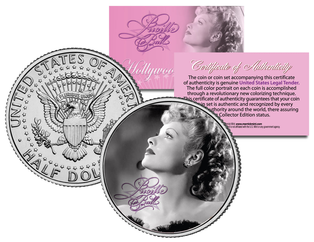 Lucille Ball - I Love Lucy Profile - JFK Kennedy Half Dollar US Coin - Officially Licensed