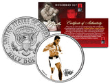 This Officially Licensed “MUHAMMAD ALI – FULL POSE” coin is a treasured collectible, successfully combining boxing with coin collecting. Here is your opportunity to own or to gift, a beautifully colorized JFK Kennedy Half Dollar U.S. Coin. This Legal Tender United States coin has been colorized with an application of special inks directly to the surface of the coin, using a unique and painstakingly multicolor coin process, which achieves a level of detail, color saturation, and durability that is #1 in the coin industry. The result is an everlasting colorized coin collectible of ultra-high quality. Each coin comes in a premium coin capsule with a Certificate of Authenticity to guaranty that your coin is authentic and recognized by every monetary authority around the world, assuring its Collector Edition status. The Kennedy half dollar is a U.S. fifty cent coin with coin year and mint marks chosen at random.