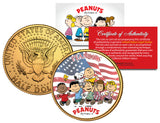 This PEANUTS – AMERICANA coin is a treasured collectible, combining the popularity of Peanuts with coin collecting. Here is your chance to own a Peanuts OFFICIALLY LICENSED, beautifully colorized LEGAL TENDER 24KT Gold Plated JFK Kennedy Half Dollar U.S. Coin. This high-quality U.S. coin has been layered in Genuine 24 Karat Gold, and then enhanced with beautiful colorized images using a unique painstaking multicolor authentic process. Colorizing coins involves the unique application of special inks directly to the surface of a coin that achieves a level of detail, color saturation, and durability that is #1 in the coin industry. The result is an everlasting colorized coin collectible of ultra-high quality. Each coin comes in a premium coin capsule with a Certificate of Authenticity to guarantee that your coin is authentic and recognized by every monetary authority around the world, assuring its Collector Edition status.