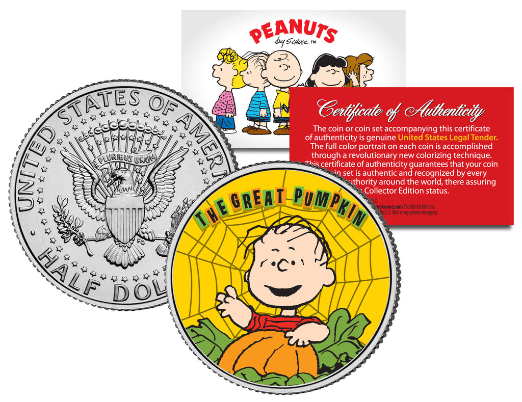 Peanuts " Halloween - Great Pumpkin - Linus - Web " JFK Kennedy Half Dollar U.S. Coin - Officially Licensed