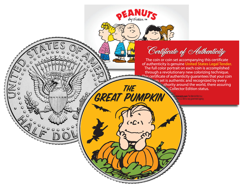 Peanuts " Halloween - Great Pumpkin - Linus - Witch " JFK Kennedy Half Dollar U.S. Coin - Officially Licensed