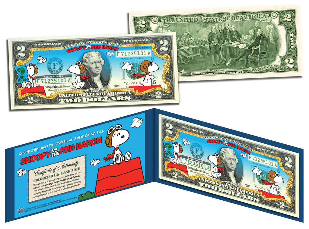 • PEANUTS - SNOOPY vs. RED BARON - Legal Tender US $2 Bill - LICENSED - Charlie Brown