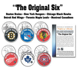 Here is your chance to own the Officially Licensed complete 6-Coin set of THE ORIGINAL SIX teams of the NHL. These legal tender Canada quarters and U.S. State quarters are beautifully colorized with the licensed NHL logo images of The Original Six teams that made up the National Hockey League (NHL) for 25 seasons starting in 1942. These six teams are the Boston Bruins, Chicago Black Hawks, Detroit Red Wings, Montreal Canadiens, New York Rangers, and the Toronto Maple Leafs. These coins have been colorized using a unique multicolor authentic process by the Merrick Mint. Colorizing coins involves the unique application of special inks directly to the surface using a unique and painstakingly multi-color process, that achieves a level of detail, color saturation, and durability that is #1 in the industry. Each coin comes in a coin capsule. The 6-coin set comes with a NHL Certificate of Authenticity.