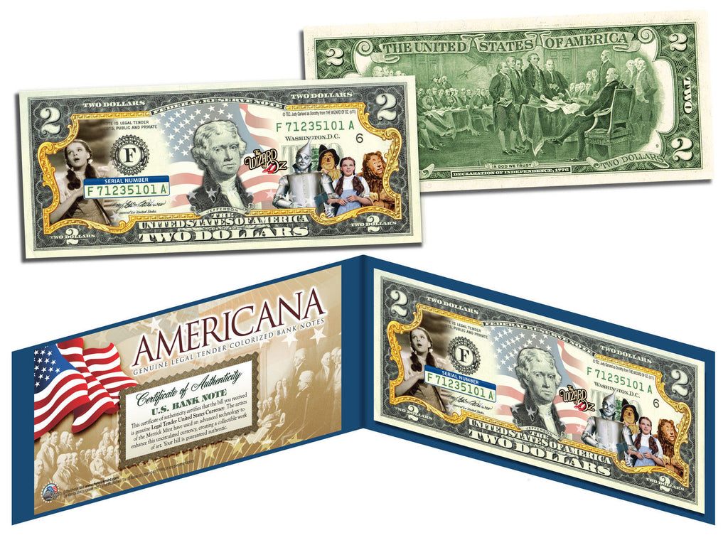 • WIZARD OF OZ - Americana - Genuine Legal Tender Colorized U.S. $2 Bill - Officially Licensed
