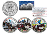 Here is your chance to own the AMERICAN PHAROAH 2015 Triple Crown Winner complete set of three (3) colorized JFK Kennedy Half Dollar U.S. Coins. These high-quality, genuine Legal Tender United States coins have been colorized using a unique painstaking multicolor authentic process by the Merrick Mint. Colorizing coins involves the unique application of special inks directly to the surface of a coin that achieves a level of detail, color saturation, and durability that is #1 in the coin industry. The result is an everlasting colorized coin collectible of ultra-high quality. Each coin comes in a premium coin capsule. The 3-coin set comes with a Certificate of Authenticity to guarantee that your coins are authentic and recognized by every monetary authority around the world, assuring its Collector Edition status. The Kennedy half dollar is a U.S. fifty cent coin with coin year and mint marks chosen at random.