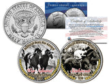 Here is your chance to own a complete set of two (2) colorized JFK Kennedy Half Dollar U.S. Coins of SEABISCUIT BEATS WAR ADMIRAL – MATCH OF THE CENTURY. These high-quality, genuine Legal Tender United States coins have been colorized using a unique painstaking multicolor authentic process by the Merrick Mint. Colorizing coins involves the unique application of special inks directly to the surface of a coin that achieves a level of detail, color saturation, and durability that is #1 in the coin industry. The result is an everlasting colorized coin collectible of ultra-high quality. Each coin comes in a premium coin capsule. The 2-coin set comes with a Certificate of Authenticity to guarantee that your coins are authentic and recognized by every monetary authority around the world, assuring its Collector Edition status. The Kennedy half dollar is a U.S. fifty cent coin with coin year and mint marks chosen at random.