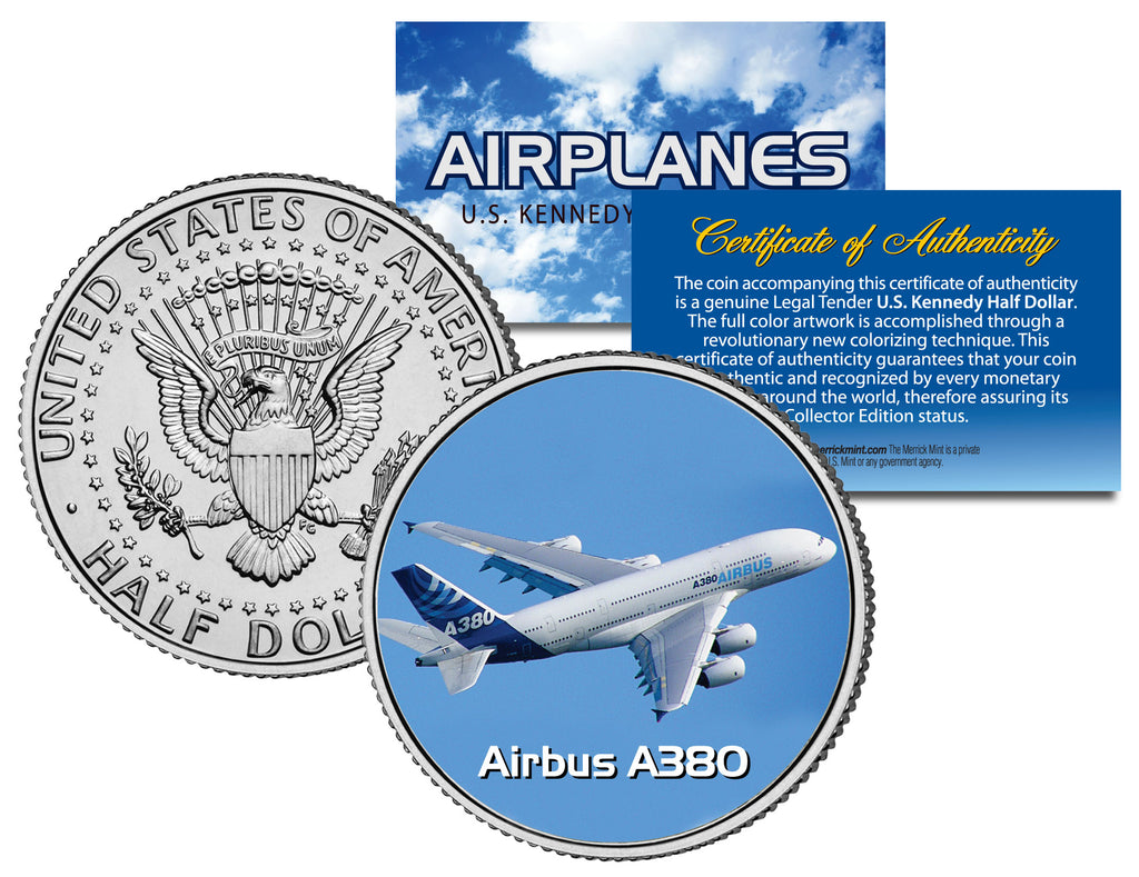 AIRBUS A380 - Airplane Series - JFK Kennedy Half Dollar U.S. Colorized Coin