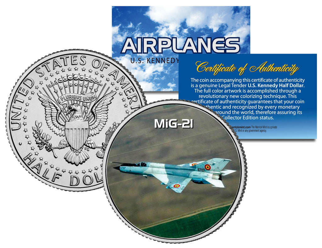 This AIRPLANE SERIES coin is a treasured collectible, combining the popularity of airplanes with coin collecting. Here is your chance to own a beautifully colorized JFK Kennedy Half Dollar U.S. Coin. This high-quality genuine Legal Tender U.S. coin has been colorized using a unique painstaking multicolor authentic process. Colorizing coins involves the unique application of special inks directly to the surface of a coin that achieves a level of detail, color saturation, and durability that is #1 in the coin industry. The result is an everlasting colorized coin collectible of ultra-high quality. Each coin comes in a premium coin capsule with a Certificate of Authenticity.