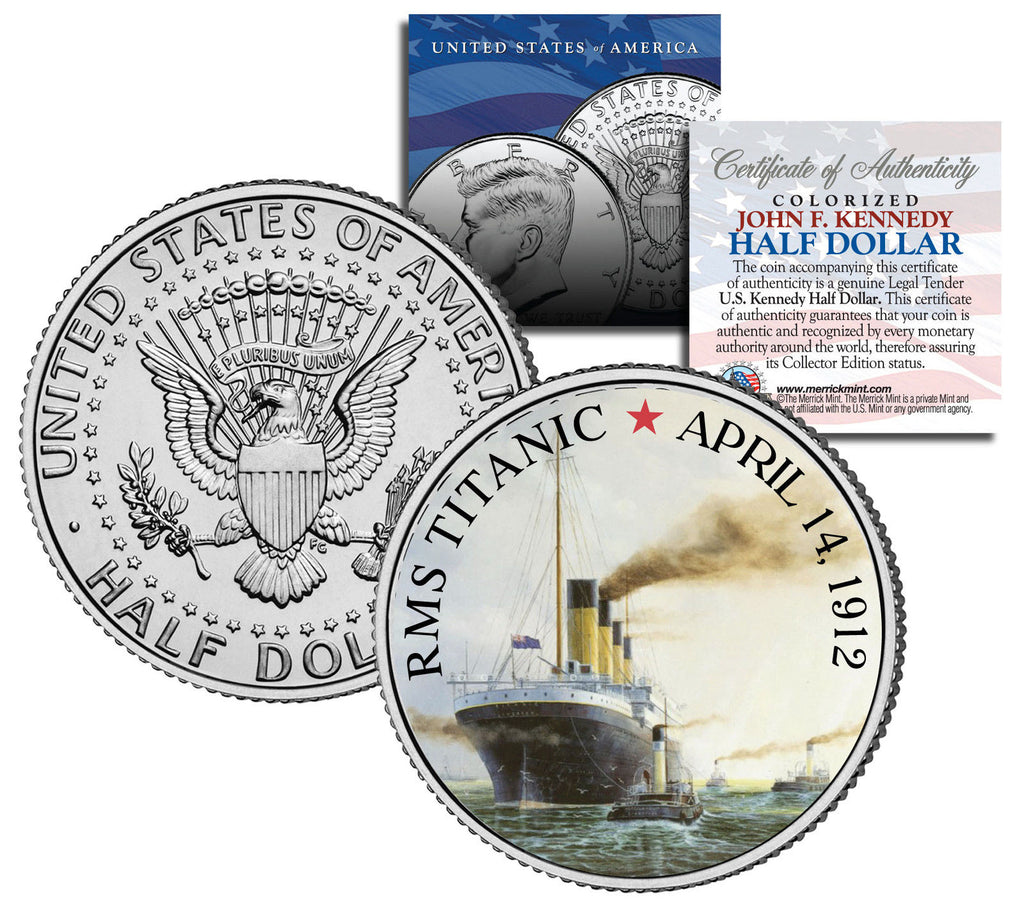 • RMS Titanic Ship - 100th Anniversary - JFK Kennedy Half Dollar US Colorized Coin