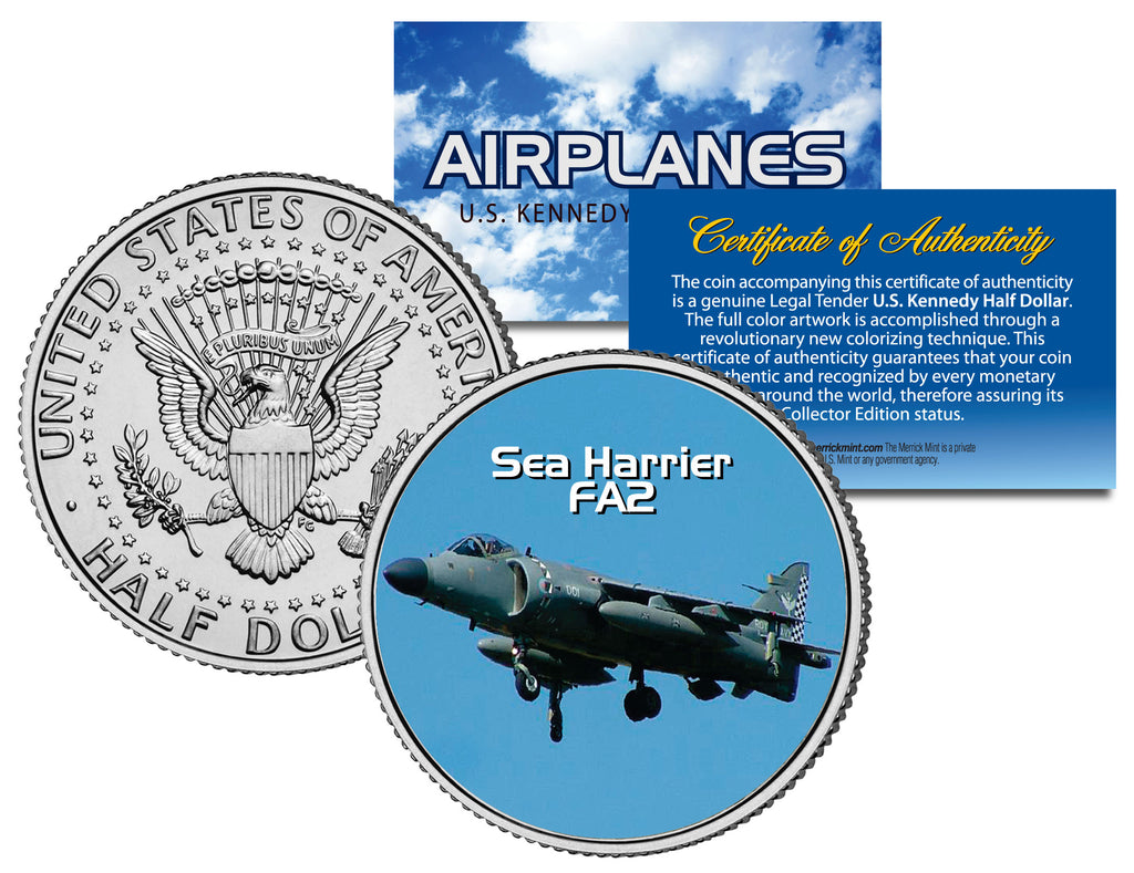 SEA HARRIER FA2 - Airplane Series - JFK Kennedy Half Dollar U.S. Colorized Coin