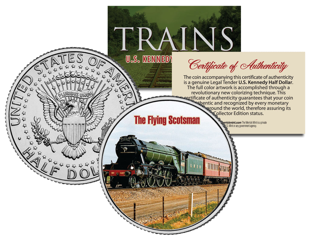 THE FLYING SCOTSMAN - Famous Trains - JFK Kennedy Half Dollar U.S. Colorized Coin