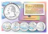 Here is your chance to own a complete set of six (6) hologram enhanced 2009 DC and US Territories Quarters U.S. Coins featuring: DC, PR, GU, AS, VI, MP. Each coin is beautifully enhanced on the reverse with a permanent hologram by the Merrick Mint to highlight the original design using a unique authentic process. The result is an everlasting hologram coin collectible of ultra-high quality that is #1 in the industry. Each coin features a unique state design on the reverse and a common obverse with portrait of George Washington. Each coin is genuine legal tender of the United States and comes in an acrylic coin holder and includes a Full Color 2-sided Certificate of Authenticity. The State Quarters Program was the most popular commemorative coin program in United States history.