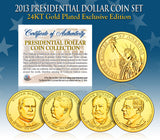 2013 Presidential $1 Dollar U.S. 24K GOLD PLATED - Complete 4-Coin Set - with Capsules