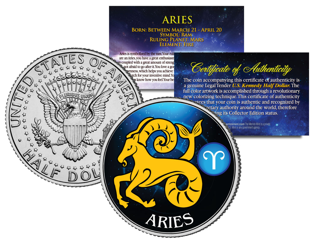 ARIES - Horoscope Astrology Zodiac - JFK Kennedy Half Dollar US Colorized Coin