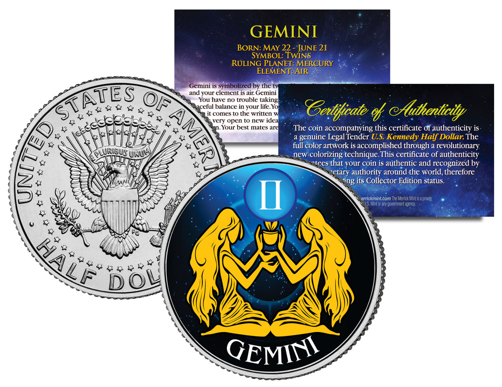 GEMINI - Horoscope Astrology Zodiac - JFK Kennedy Half Dollar US Colorized Coin