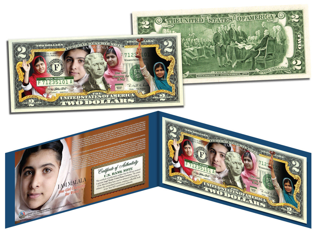 • Malala Yousafzai " I AM MALALA " Genuine Legal Tender Colorized U.S. $2 Bill