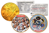 Here is your chance to own a complete set of two (2) 24KT Gold Plated and colorized Eisenhower Dollar U.S. coins featuring the MOONWALKERS, the only 12 men to have ever walked on the surface of the moon. The 2-coin set includes: “MOONWALKERS NASA ASTRONAUTS PHOTO” coin plus “MOONWALKERS APOLLO SPACE MISSIONS INSIGNIA” coin. These high-quality, genuine Legal Tender United States coins have been layered in Genuine 24 Karat Gold, and then colorized using a unique painstaking multicolor authentic process by the Merrick Mint. Colorizing coins involves the unique application of special inks directly to the surface of a coin that achieves a level of detail, color saturation, and durability that is #1 in the coin industry. The result is an everlasting colorized coin collectible of ultra-high quality. Each coin comes in a premium coin capsule. The 2-coin set comes with a Certificate of Authenticity to guarantee that your coin is authentic and recognized by every monetary authority around the world, assuring its Collector Edition status.