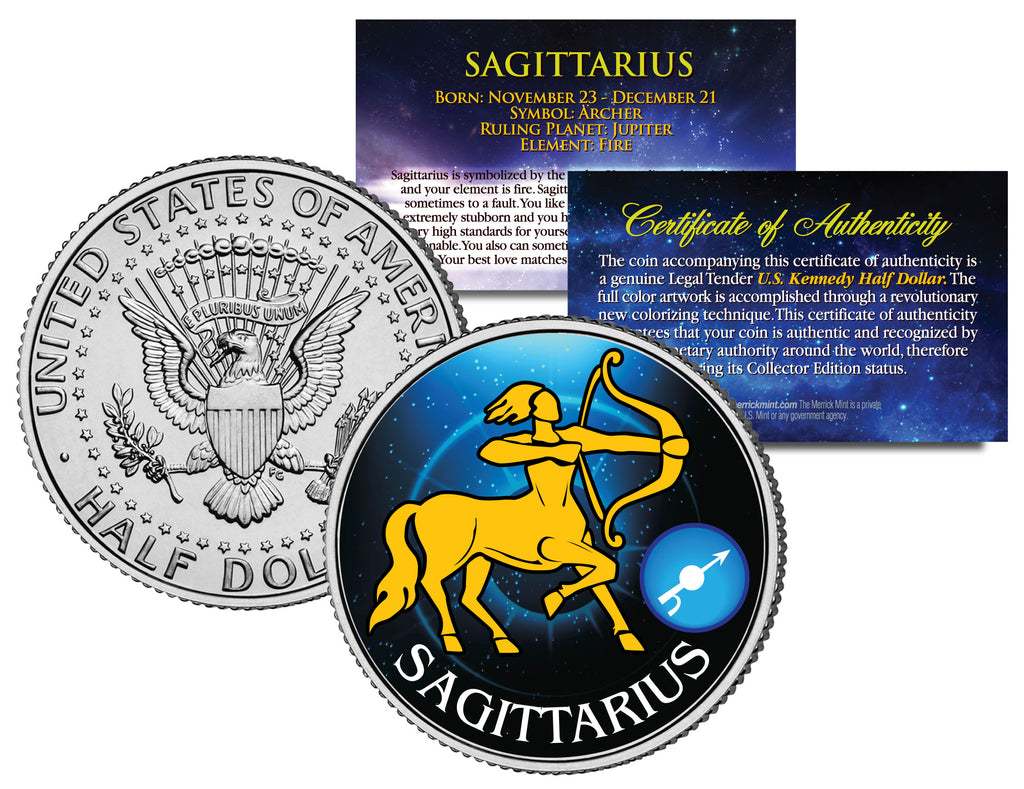 SAGITTARIUS - Horoscope Astrology Zodiac - JFK Kennedy Half Dollar US Colorized Coin