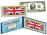 UNITED KINGDOM - Official Flags of the World Genuine Legal Tender U.S. $2 Two-Dollar Bill Currency Bank Note